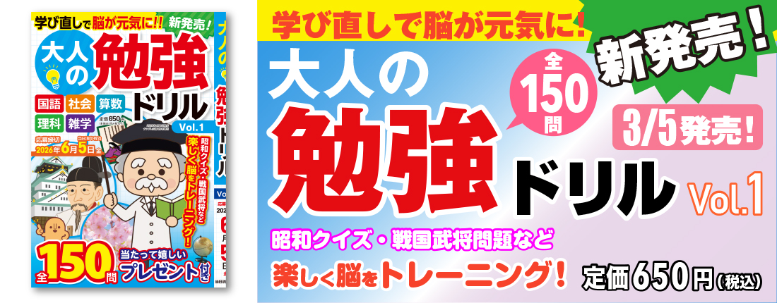 2025-12-10発売定価650円(本体価格591円+税10%) 昭和のアイドルやテレビ番組など、昭和クイズや教科書問題に、懐かしい思い出が甦ってきます。さらにナンプレやクロスワードのパズルもあり、問題数は全150問。…
